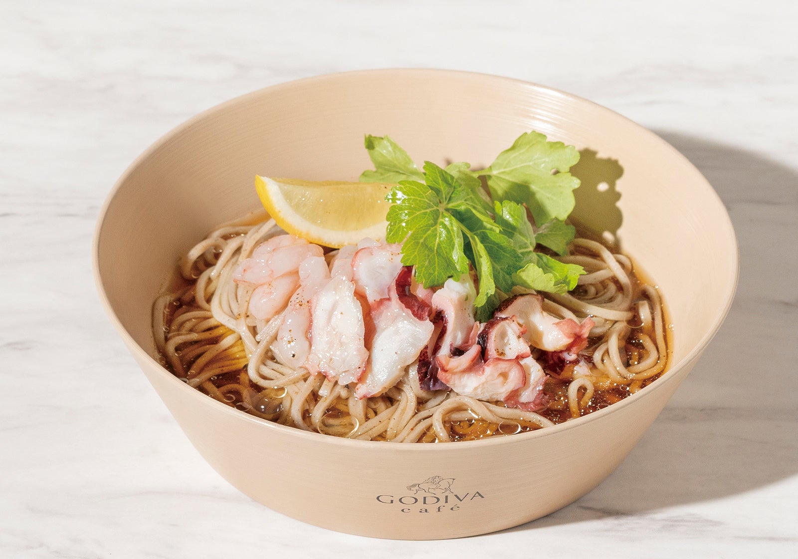 GODIVA café 東京店・飯田橋店・みなとみらい店・日本橋店・大宮店・二子玉川店・越谷イオンレイクタウンmori店「甘海老と蛸の柑橘香味蕎麦~カカオ黒七味添え」 1,210円