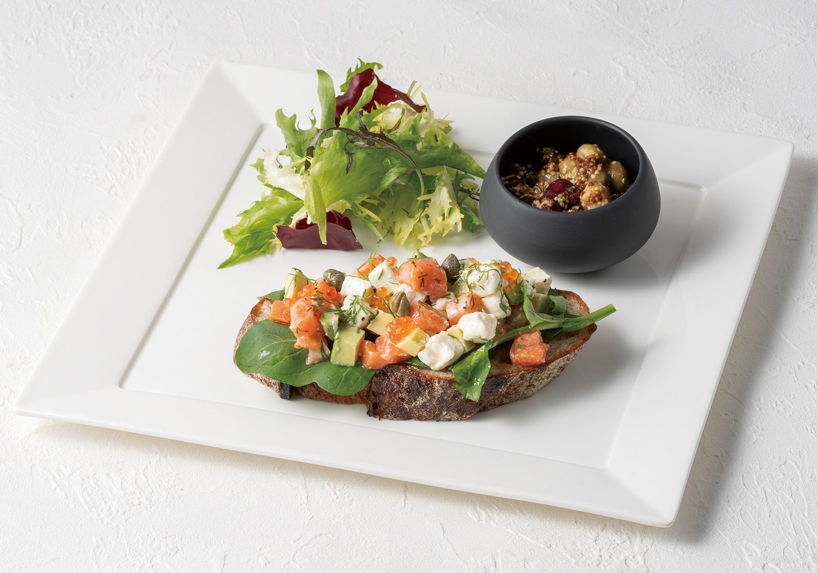 GODIVA café 東京店、飯田橋店、みなとみらい店、大宮店、二子玉川店、越谷イオンレイクタウンmori店「サーモンとアボカドとクリームチーズのタルティーヌサンド」 1,490円