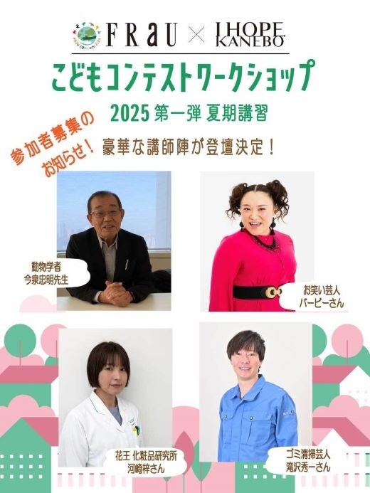 「I HOPE.」を掲げ、美ではなく、希望を発信するブランド「KANEBO」は、講談社FRaUの「考えよう!『ミライの地球』こどもプレゼン・コンテスト」に協賛し、夏休み特別企画「こどもコンテストワークショップ」を8月2日(土)に開催いたします。「ざんねんないきもの事典」の今泉忠明さんやバービーさん、マシンガンズの滝沢秀一さんを講師にお迎えし、こどもたちにいま知ってほしい社会の課題が、楽しく学べる特別企画です。