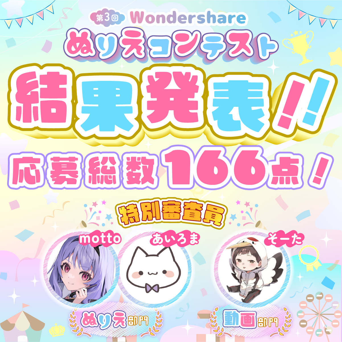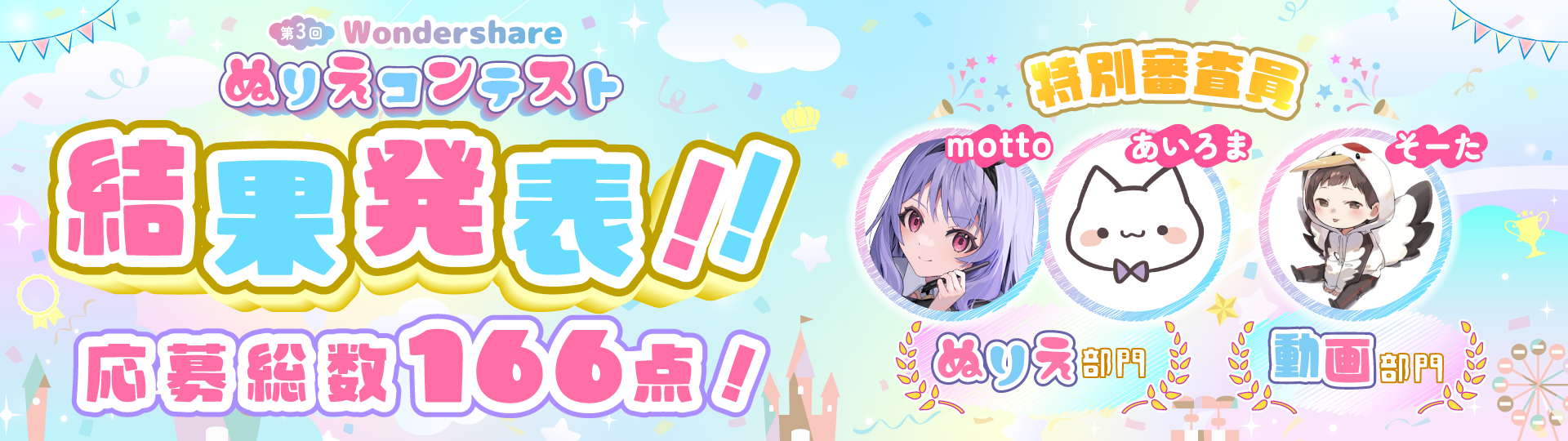 【結果発表!!】人気アーティスト描き下ろし 第3回 Wondershare ぬりえコンテスト 受賞作品を発表★!|Wondershare Filmora(フィモーラ)