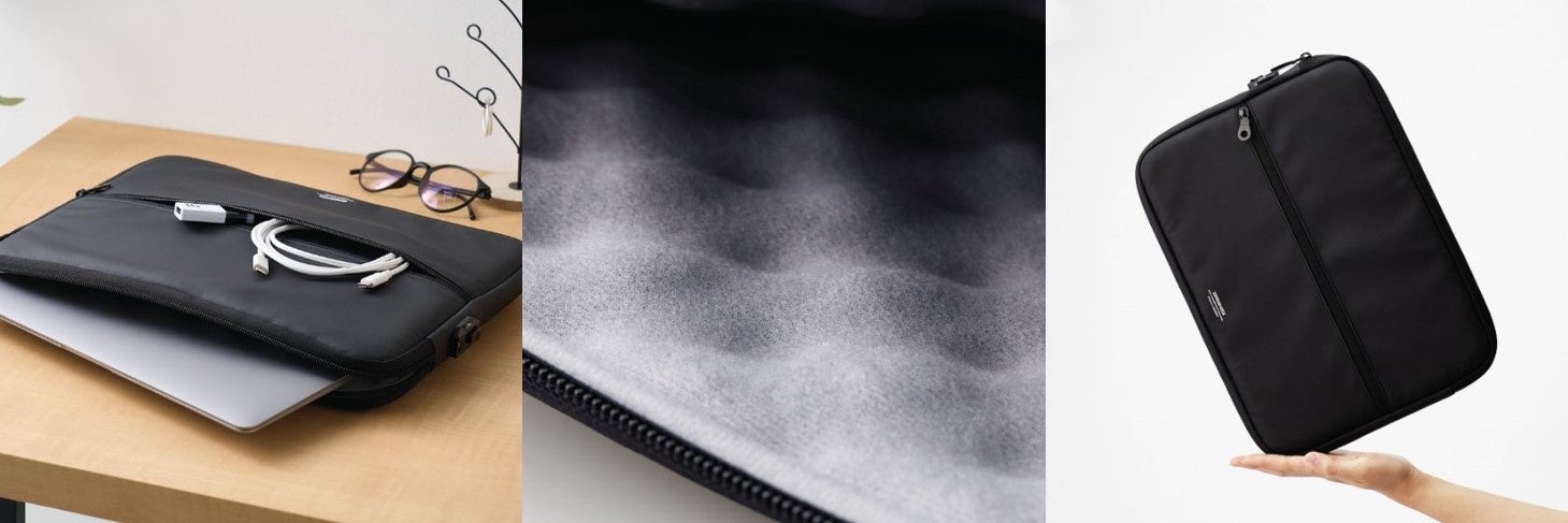 持ち運びにも便利なハンドル付きタイプ、ノートパソコンを衝撃から守りながらスリムに包み込む耐衝撃タイプのインナーバッグ2種類をご用意しております。