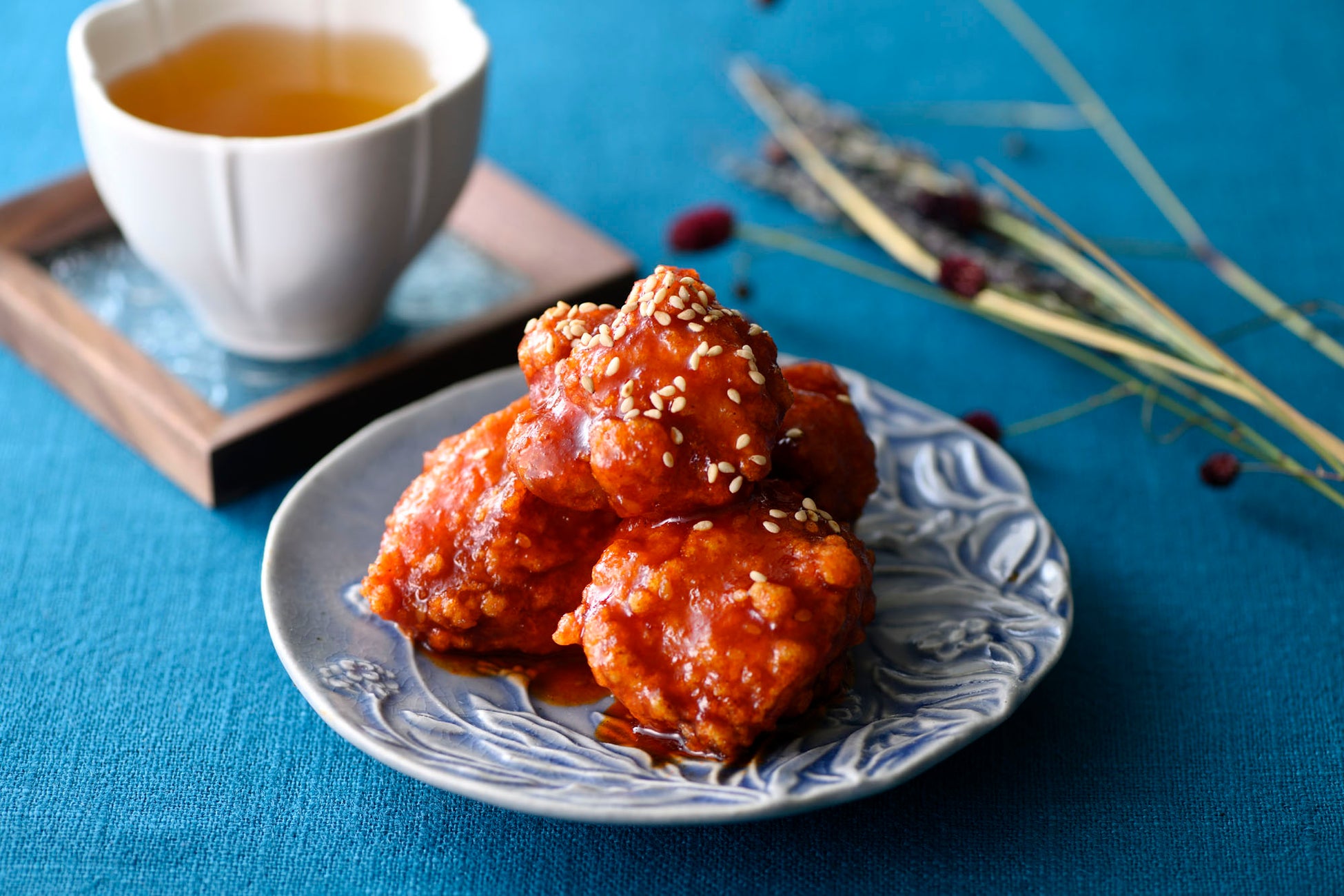 自家製唐揚げを後引く辛さの甘辛ソースでからめた一品。
