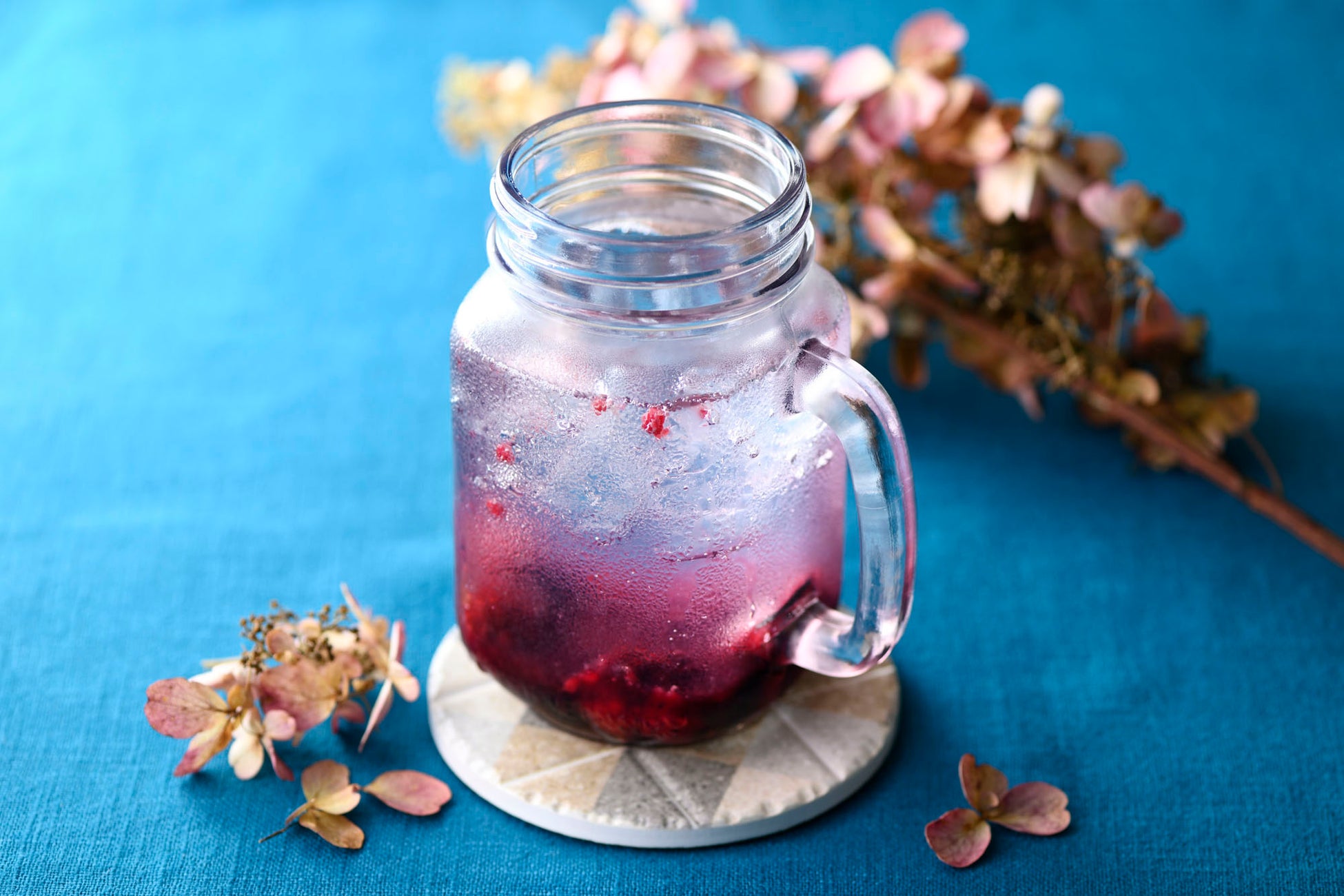 3種のベリーと美酢ブルーベリーを炭酸で割ってシュワッと爽快なドリンクに。