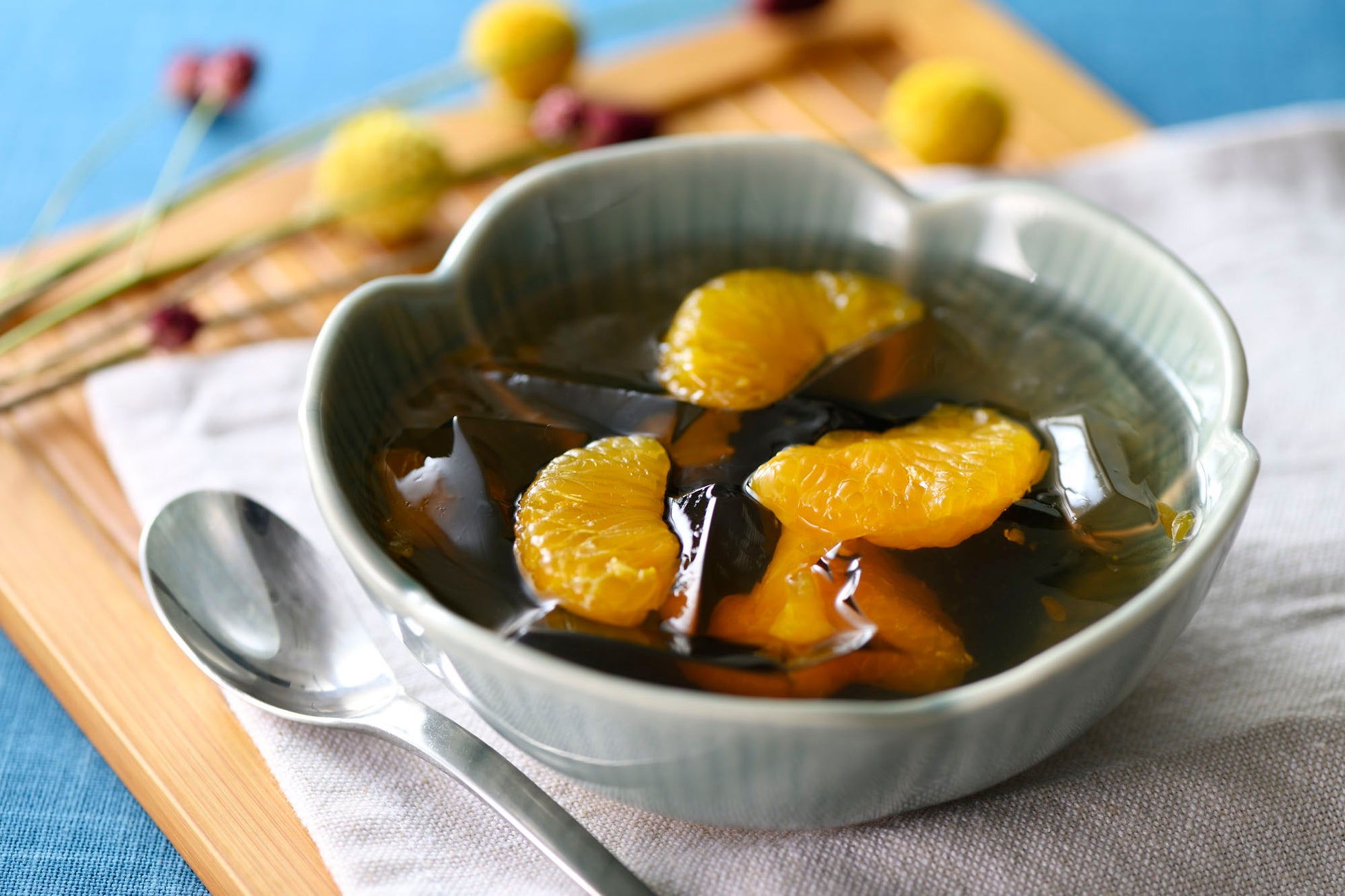 美酢グレープフルーツを使用したゼリーとみかんを合わせたさっぱりデザート。