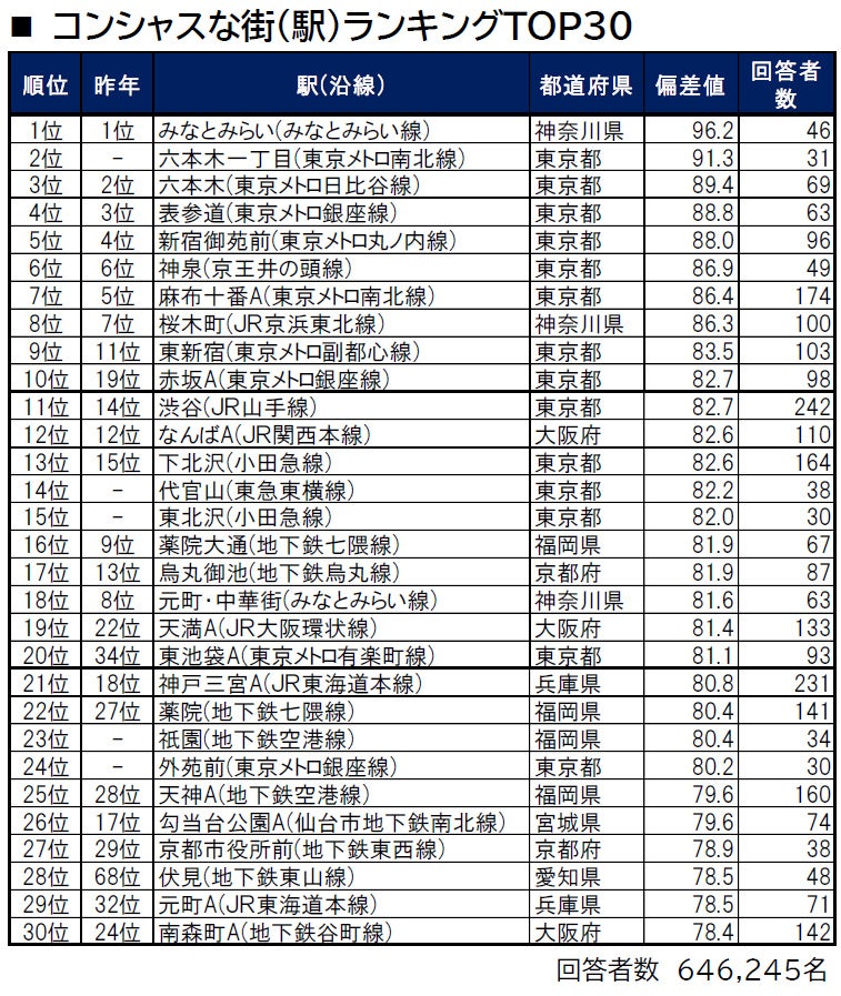 ■「コンシャスな街(駅)」トップ3は、みなとみらい、六本木一丁目、六本木