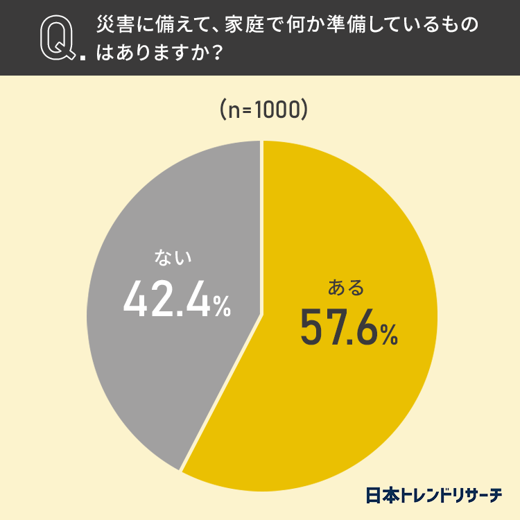 57.6%と、半数以上の方が災害に備えて家庭で何か準備しているものが「ある」と答えました。