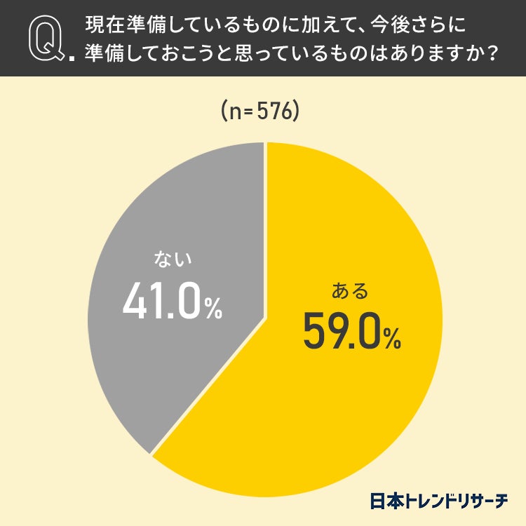 59.0%と半数以上の方が、今後さらに準備しておこうと思っているものが「ある」と答えました。