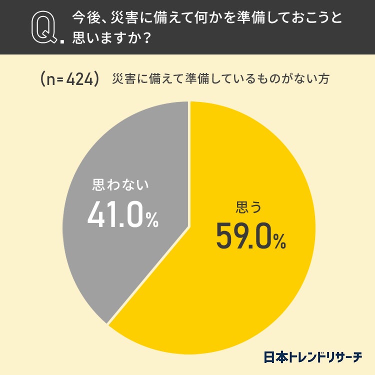 現在は準備していない59.0%と半数以上の方が、今後、災害に備えて何かを準備しておこうと「思う」と回答しました。