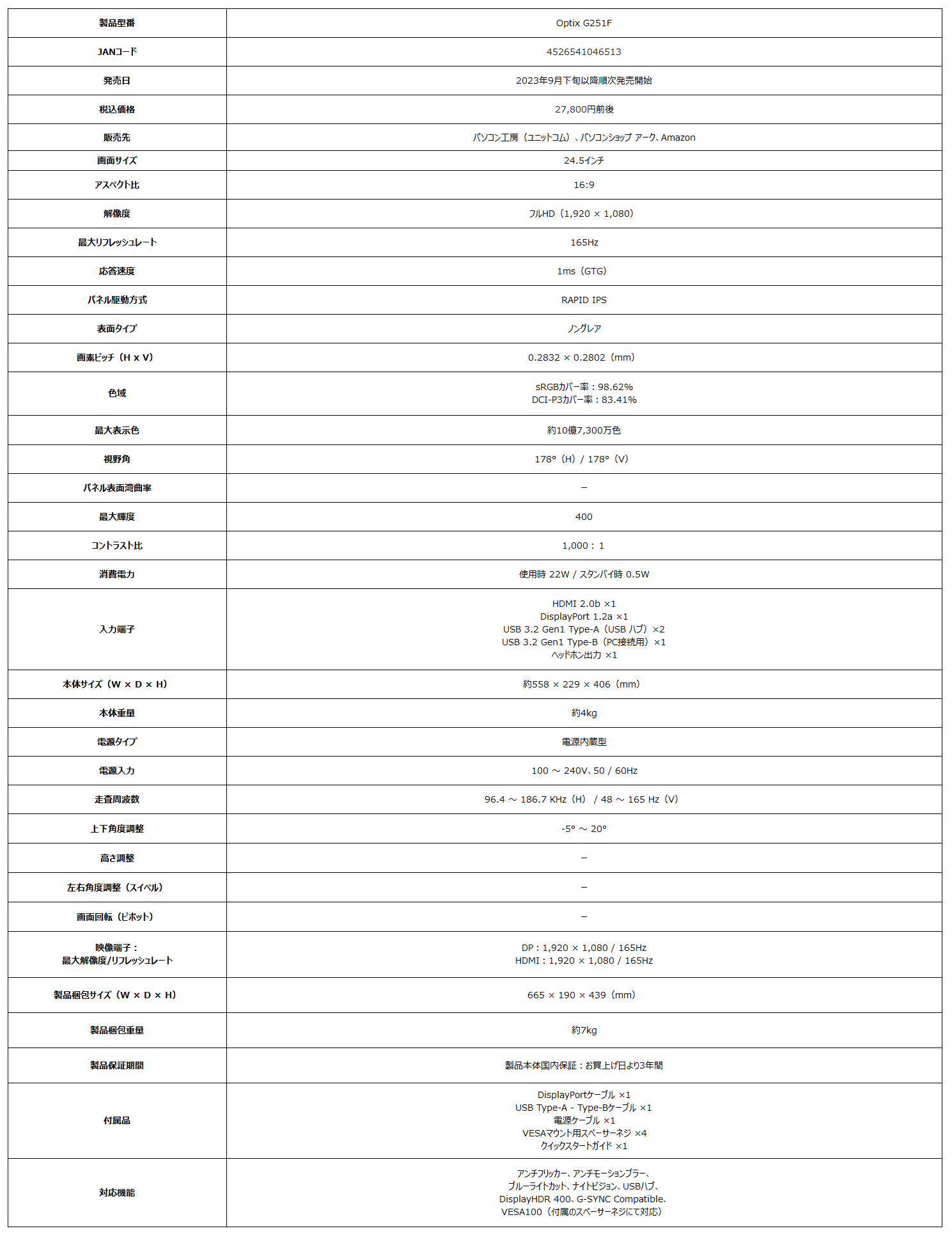 ■ Optix G251F製品ページ: https://jp.msi.com/Monitor/Optix-G251F