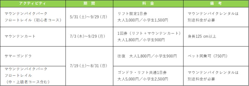 *サマーゴンドラ運行開始:2025 年 7 月 19 日(⼟)〜予定