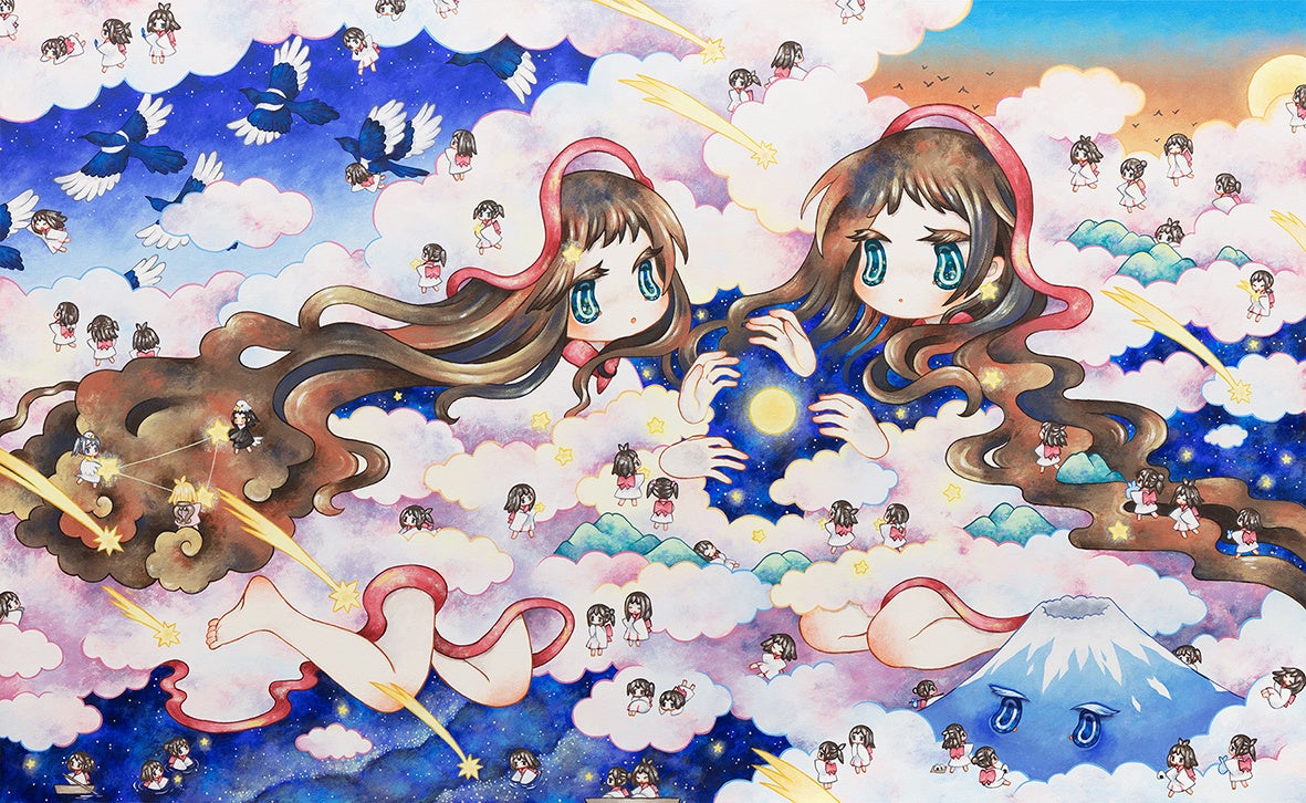 日本では4年ぶりの個展となる本展では、七夕の夜をテーマに描かれた大型作品「星合い」を含む新作12点を展示します。愛らしい少女たちの姿が織り成す金田涼子の世界観を、是非会場にてお楽しみください。