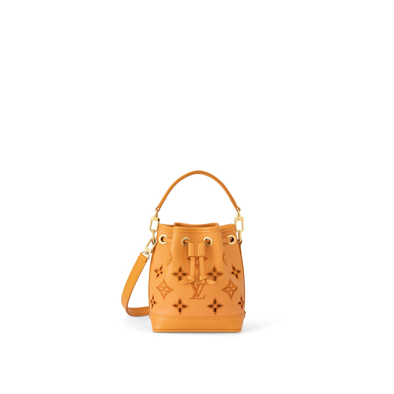 「ナノ·ノエ」は、柔らかいカーフレザーにパーフォレーションでモノグラム・パターンを描き、フェミニンで洗練された雰囲気を演出する刺繍を施しています。実用的なドローストリング開閉式のアイコンバッグ「ノエ」を、日常の必需品を持ち運ぶのに最適なミニチュアサイズに仕上げました。取外し可能なハンドルと取外し & 調節可能なショルダーストラップ付き。