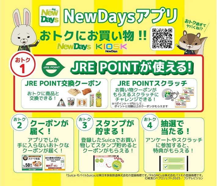 NewDaysでは、JRE POINT WEBサイトに登録したSuicaでお買い物をすると、200円