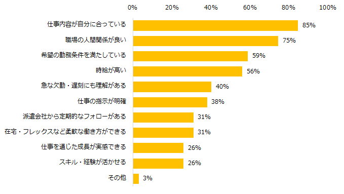 ・派遣先が合わなかっただけであり、派遣元には特に問題を感じなかったため。(30代女性)