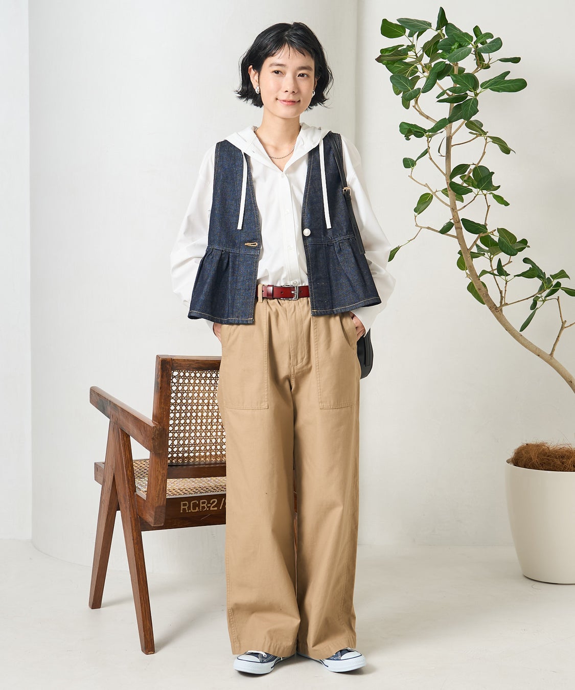 着回し自在、前後2WAYで楽しむ大人ペプラムビスチェ。デニム特有の程よいハリ感で自然とメリハリのあるバランスに!