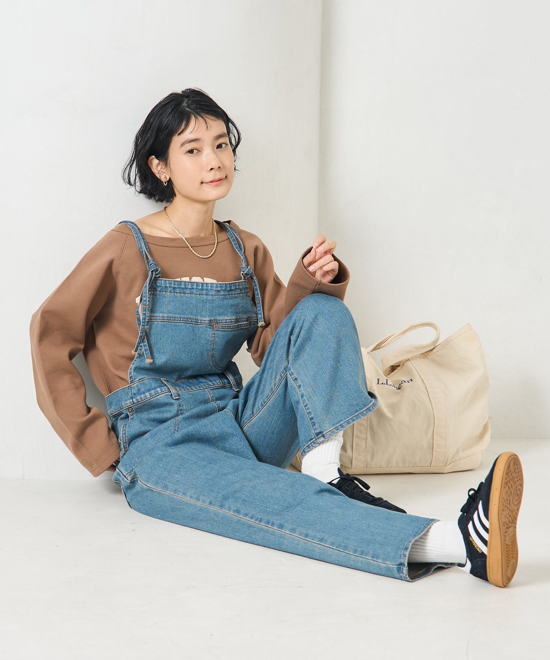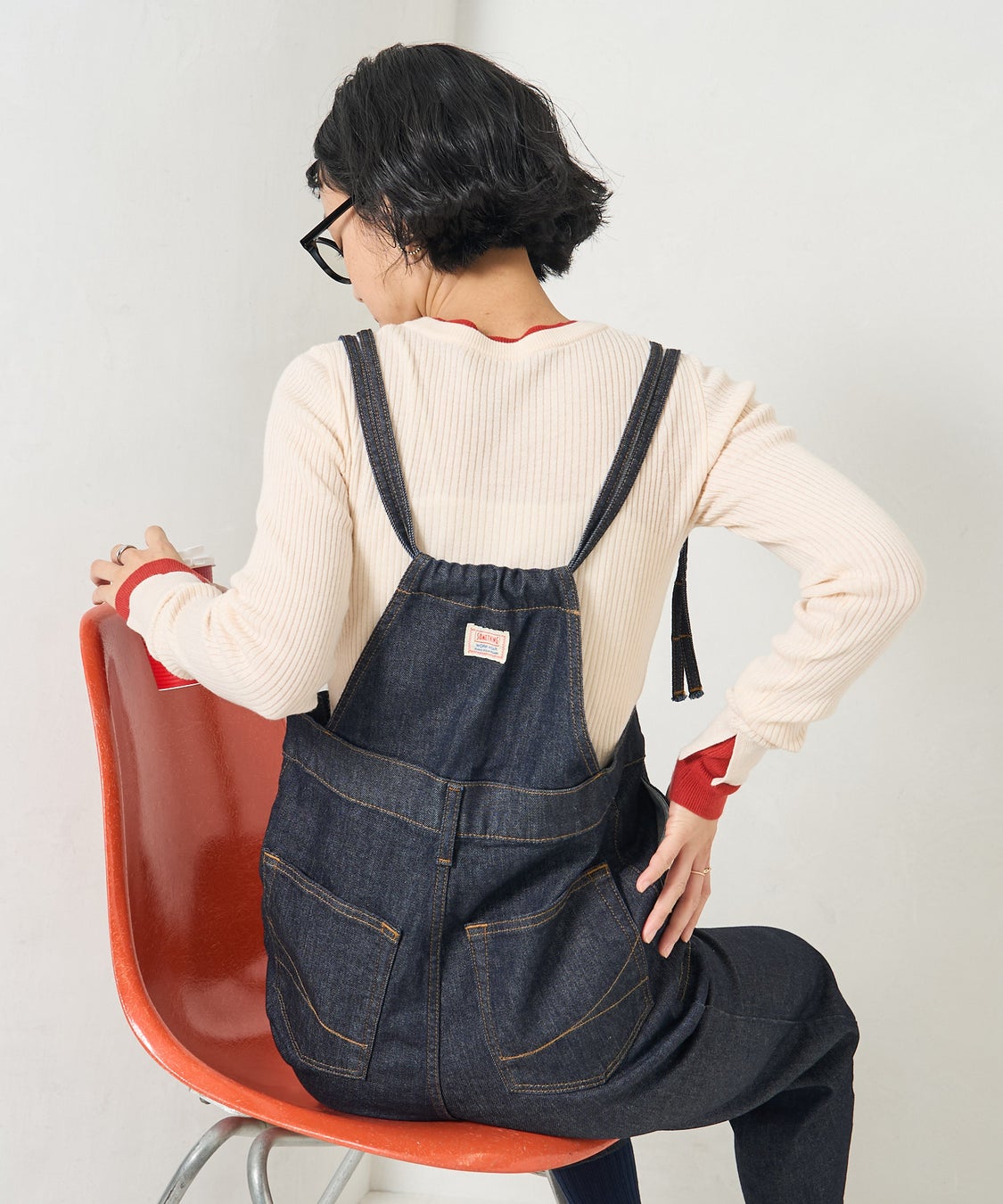 華奢なストラップで、大人も着やすいデニムサロペット。身体のラインを拾いすぎず、まっすぐ落ちるナロー寄りのストレートシルエットですっきりと着こなせます。