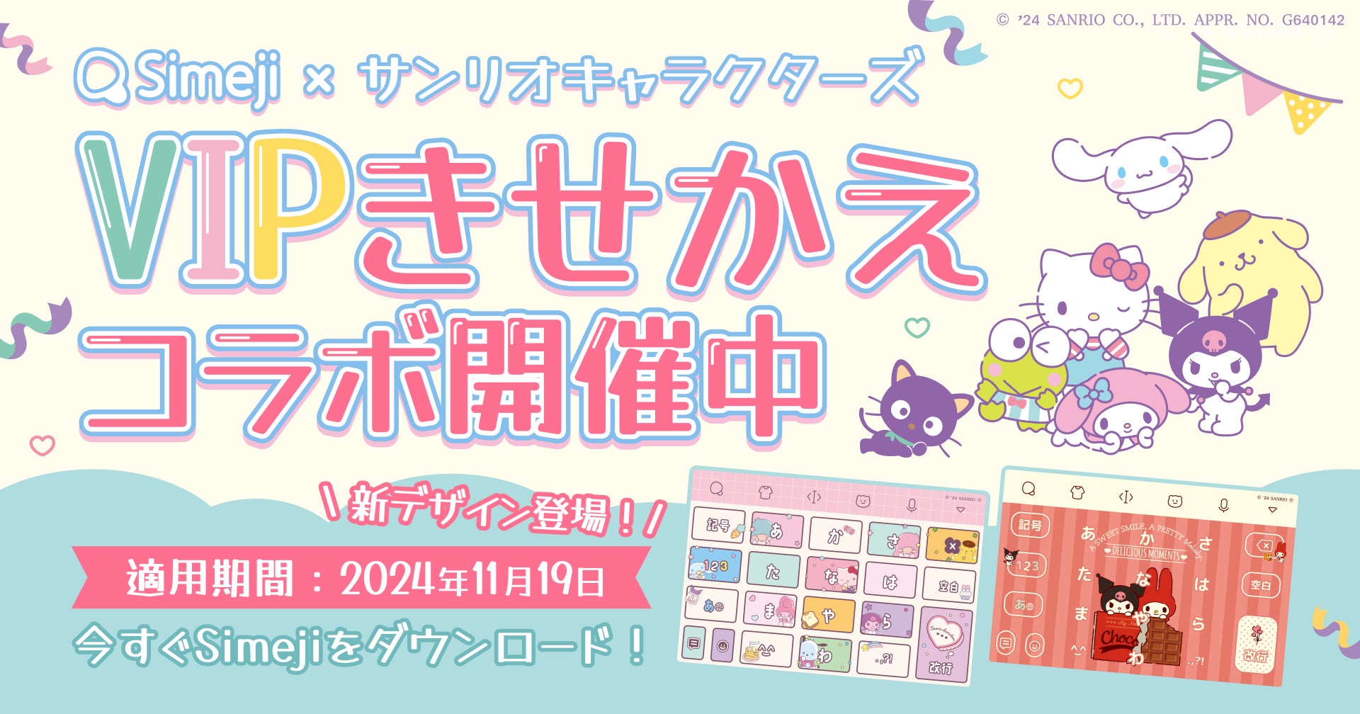 Z世代に大人気!キーボードアプリ「Simeji」、サブスクリプションサービス『SimejiVIP』にて大人気の「サンリオキャラクターズ」と期間限定コラボを実施!
