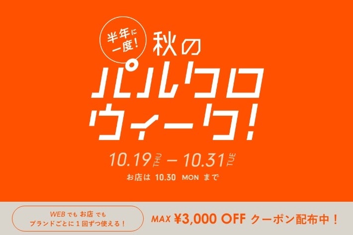 半年に一度!秋のパルクロウィーク開催【2023年10月19日(木)〜10月31日(火)】
