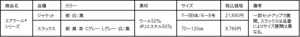 お客様のお声により、本年度はセットアップで新登場!産学協同開発素材使用『エアクール®セットアップ』展開 !~放熱量は従来生地の約1.2倍~