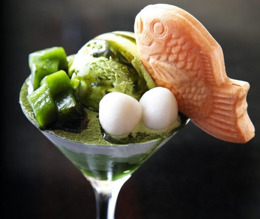 鳴門金時アイス、チップス、ペースト、アイスなど、カップの底まで、特産品の鳴門金時をたっぷりと詰め込んだ、芋づくしパフェ。