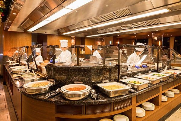 和・洋・中の専門シェフによる本格料理と豊富な品揃えを誇るビュッフェ主体のレストラン。ライブ感溢れるオープンキッチンから出来たての料理をお出しします。ティータイムはケーキセットやカフェを、夜はバーとしてもお楽しみいただけます。店内は広々としたスペースで歓送迎会やお誕生日会などのパーティーにも最適です。