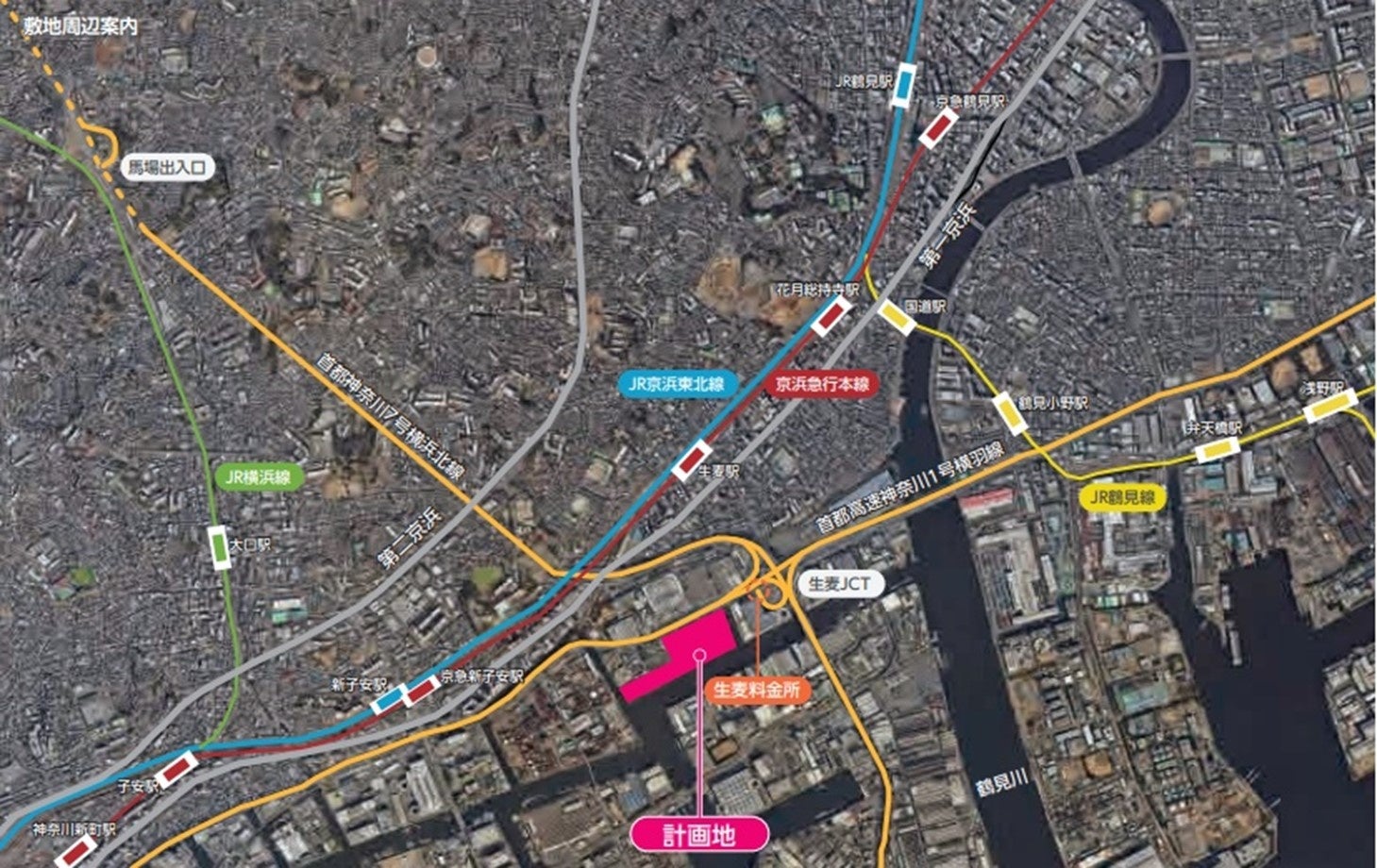 「MFLP横浜新子安」は、首都高速神奈川1号横羽線、5号大黒線、7号横浜北線の生麦ランプ入口に近接し、産業道路や国道15号(第一京浜)へのアクセスも可能です。東京都心まで1時間配送が可能で、神奈川県内陸部等の人口集積地域にもアクセスが良く、広域配送にも適しています。また、京浜急行電鉄本線「生麦」駅から徒歩13分と公共交通機関による通勤利便性が高く、入居企業の人材確保においても大変優位性のある立地です。