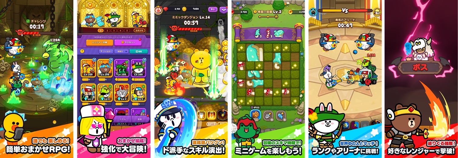 LINE GAMEでお馴染みのキャラクターたちが登場。スキル、なかま、装備、ポテンシャルなど様々な成長要素が盛りだくさん!