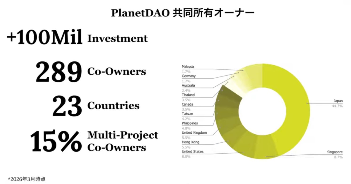 PlanetDAOでは、2026年5月21日(木)・22日(金)の2日間、国内外の共同オーナーが佐渡に集結する「Co-Owner Stayover」を開催いたします。Planet Labs代表西村、北條家の北條規氏、そして世界中から集まるオーナーたちの「生の声」を直接取材いただけます。また、和歌山県那智勝浦でも同様の機会が今後ございます。お問い合わせください。