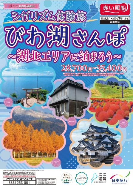 この度、当社は新たに滋賀県のふるさと納税返礼品「地域限定旅行クーポン」が利用できる「ここ滋賀」専用商品を個人型企画旅行「赤い風船」の商品として造成し、7/18(火)より販売を開始します。滋賀県が推進する、琵琶湖を始めとした自然と歩みをそろえ、ゆっくり、ていねいに暮らしてきた滋賀の時間の流れや暮らしを体感することで心のリズムを整える新たな旅の提案「シガリズム」の連動に加え、滋賀県北部の観光振興にも寄与するものであり、新しい滋賀県を発見する旅をお楽しみください。