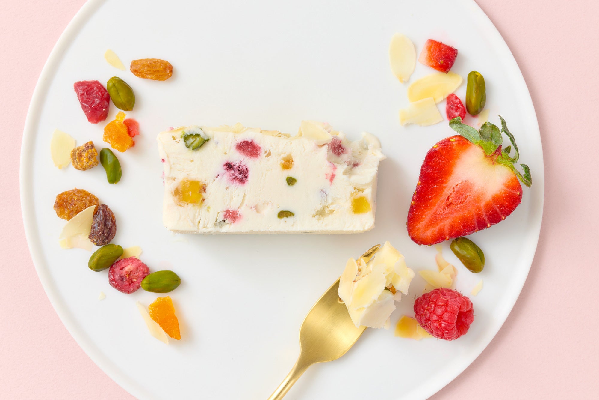 なめらかな口溶けに、ベリーの酸味とナッツの食感、リモンチェッロの爽やかな香りをまとったドライフルーツ