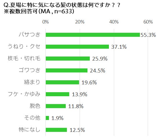 - 夏は髪のダメージシーズン!?夏に髪ダメージを実感するのは7割!最も気になるのは「パサつき」