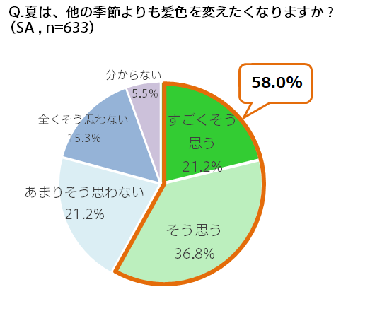 - 夏は他の季節より髪色を変えたくなる女性は約6割、一方でカラーのダメージが気になる人は7割にも!