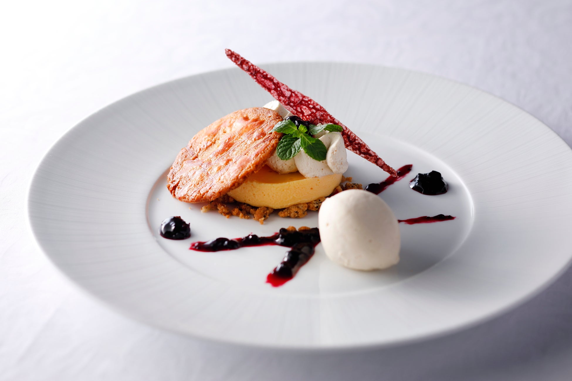 ◆『AOP*バターのガレットと濃厚なチーズのムース 青森県産カシスのコンフィチュールにオータムダージリンのアイスクリーム添え』 2,700円