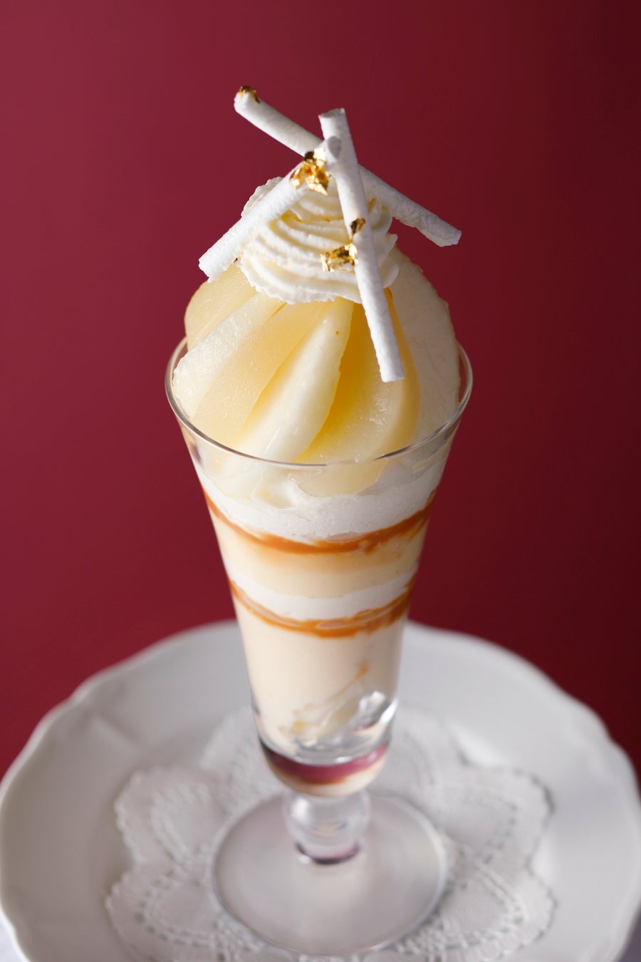 完熟を迎えたラ・フランスを使用したパフェです。芳醇な香りと、とろけるような甘さが口いっぱいに広がります。