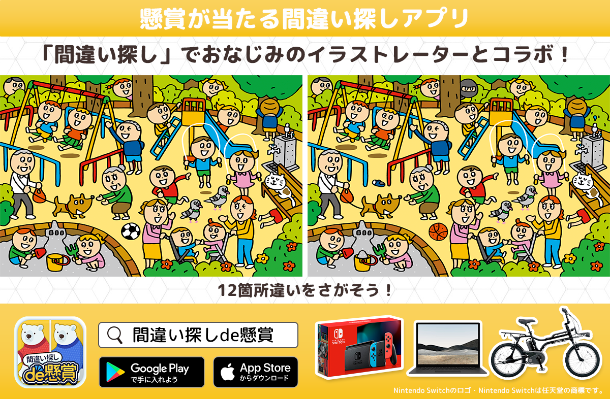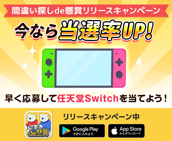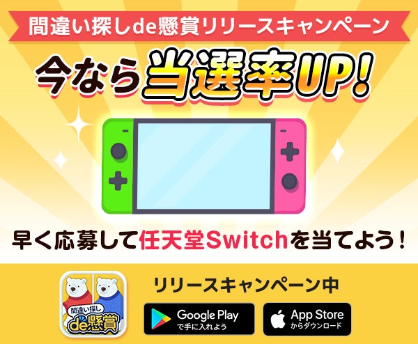 また、今回のリリースを記念してデジタルギフトや人気ゲーム機などが当たる「間違い探しde懸賞 リリースキャンペーン」を開催しております。