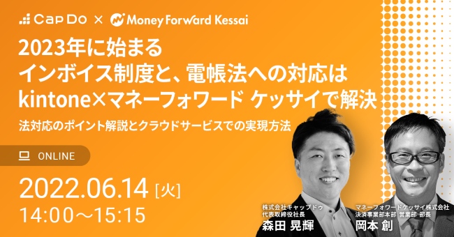 セミナー名:2023年に始まるインボイス制度と、電帳法への対応はkintone×マネーフォワード ケッサイで解決 ~法対応のポイント解説とクラウドサービスでの実現方法~