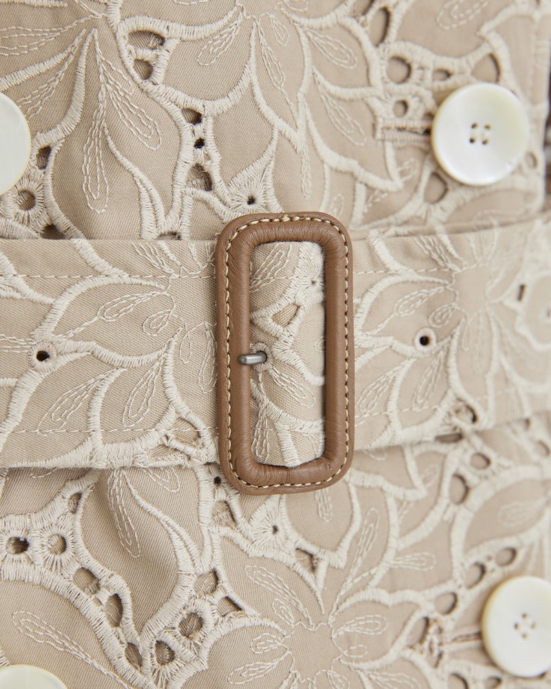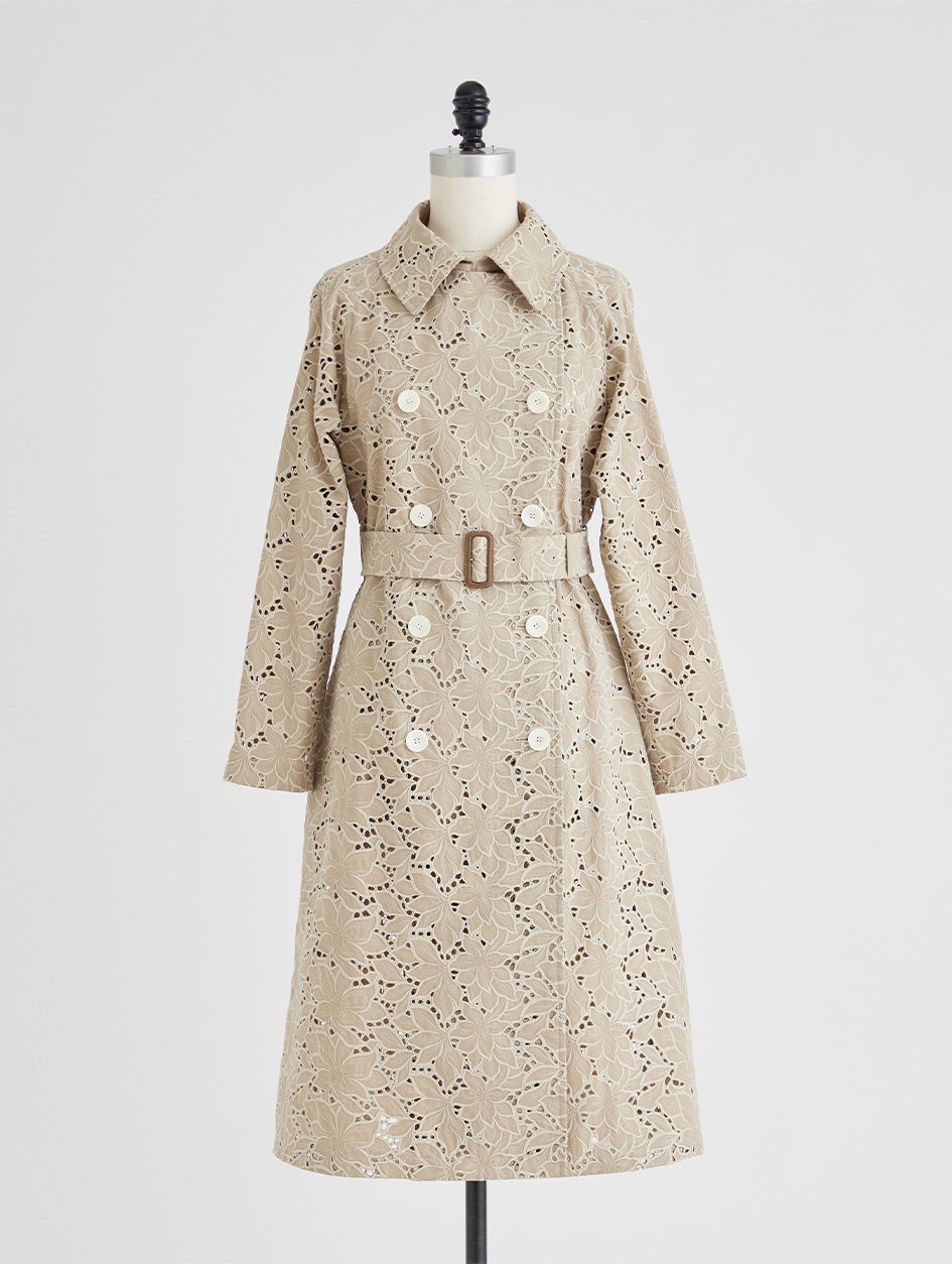 表情豊かなエンブロイダリートレンチコート。