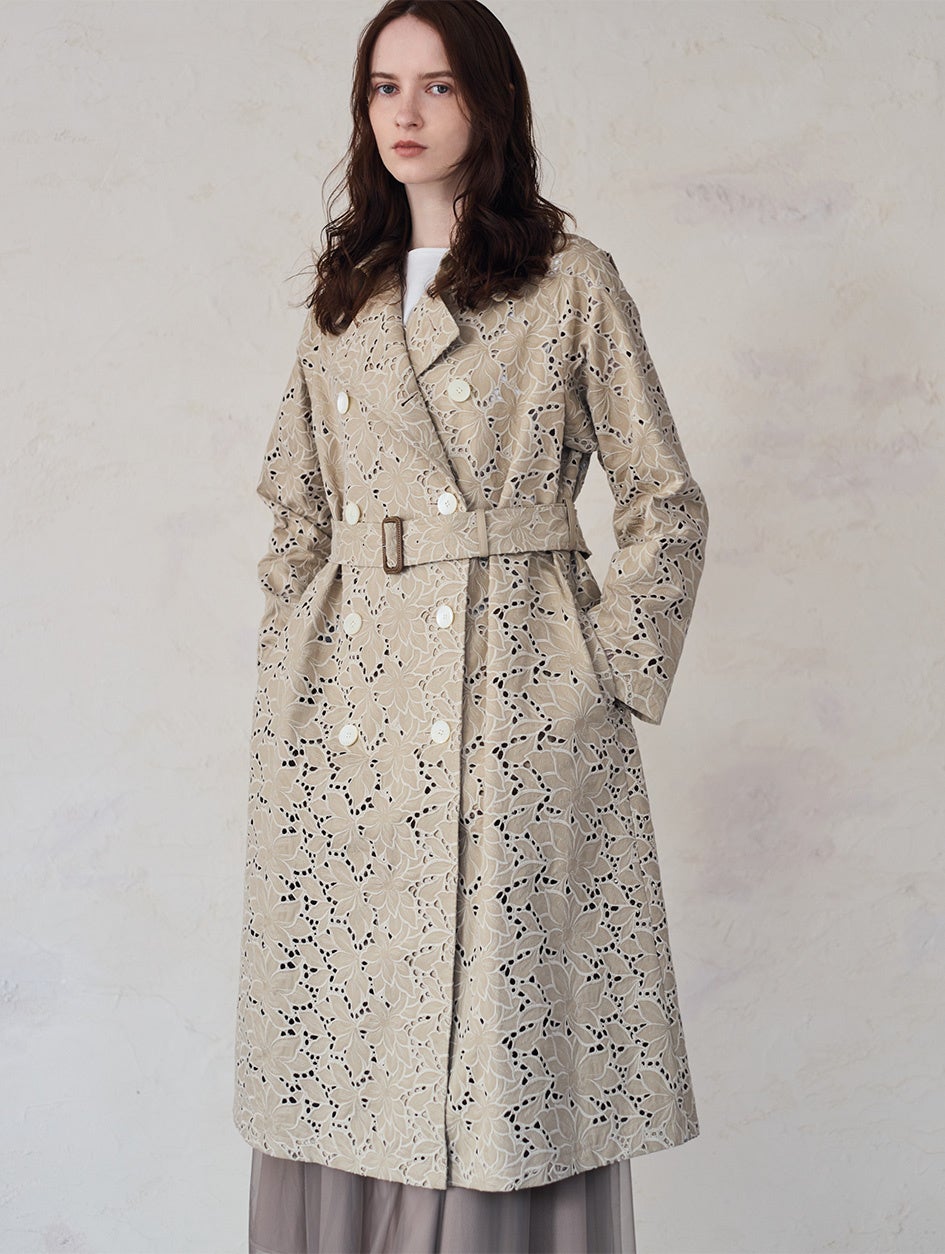フラワーエンブロイダリーダブルトレンチ