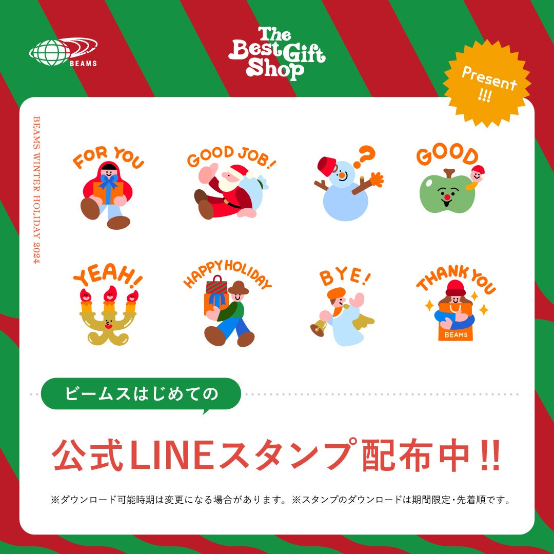 今年のキャンペーンでは、アーティストZUCK氏が手掛けた優しさあふれるイラストを使用したBEAMS公式LINEスタンプを、期間限定で無料配布。12月5日(木)11:00頃〜、BEAMS LINE公式アカウントを「友だち追加」するだけで、ZUCK氏が描いた全8種類のホリデーLINEスタンプを無料でダウンロードいただけます。それぞれのLINEスタンプは、ホリデーシーズンの喜びや温かさを感じさせるデザインで、家族や友人とのコミュニケーションをより楽しく、特別なものにしてくれるはずです。