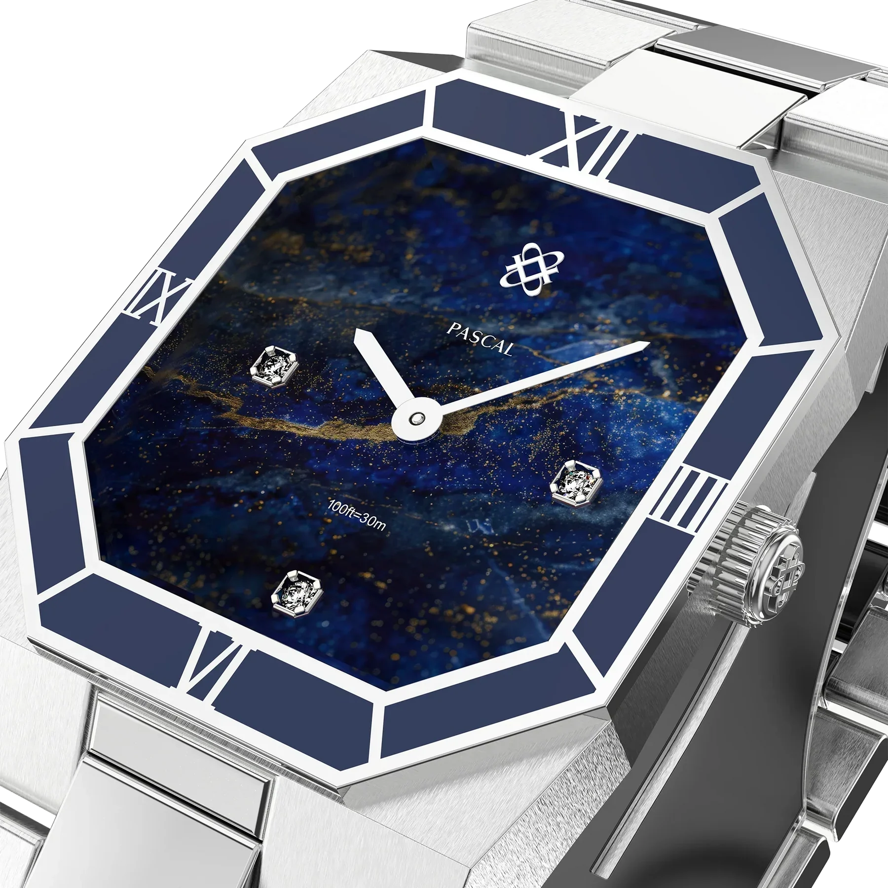 本コレクションに使用されているラボグロウンダイヤモンドは、PASCALが採用する基準に基づいた高品質なものです。天然ダイヤモンドと同等の結晶構造と輝きを持ちながら、環境への負荷にも配慮した素材で、時計全体に上質なアクセントを添えています。