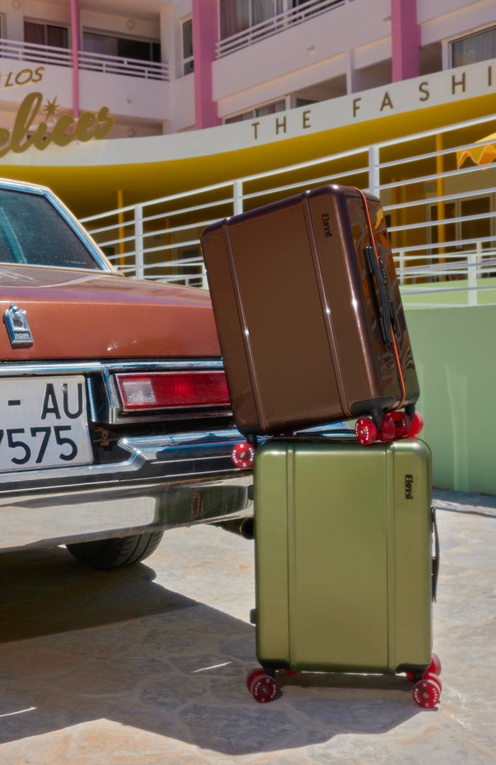 Floydのトラベルケースは、70年代のベニスビーチ・カルチャーからインスピレーションを得たポップなカラー展開とキャスター部分がスケートボードのウィールになっているのが特徴的なデザインです。
