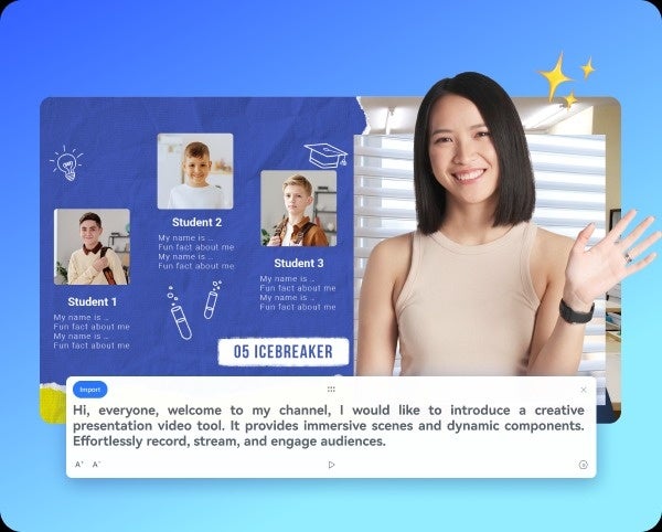 AIを使うことで、オンラインプレゼンテーション時の不要な背景を消去し、視聴者が重要なポイントに集中できるようにします。さらに、テレプロンプターにより、原稿はいつも表示されるため、本当に伝えたい大事なポイントを伝え忘れる心配もありません。