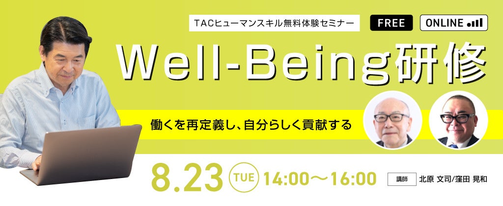 その第五弾として、8月23日(火)に「Well-Being研修 ~働くを再定義し、自分らしく貢献する~」を開催します。