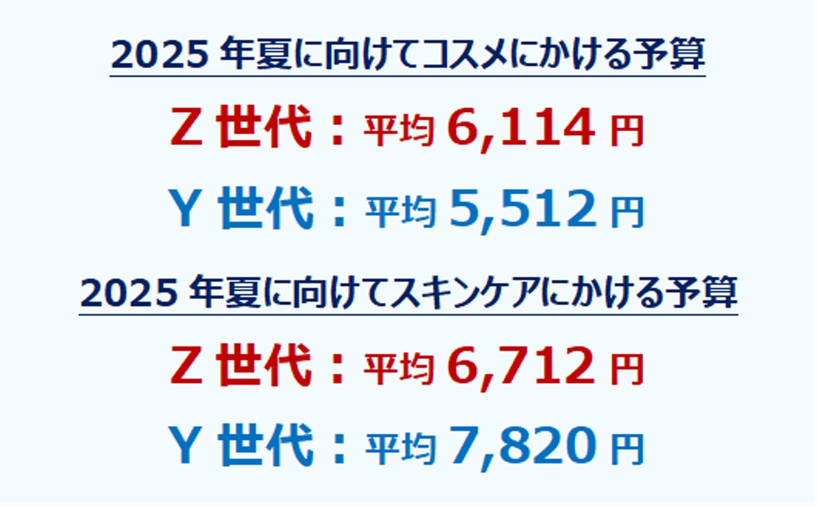 平均予算も調査!コスメはY世代よりZ世代が高め。Y世代はコスメよりスキンケアを重視したい傾向に