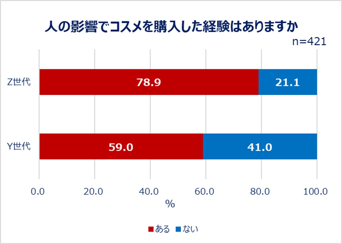 Y世代よりZ世代の方が「友人」「推し」など人の影響でコスメを買う傾向に