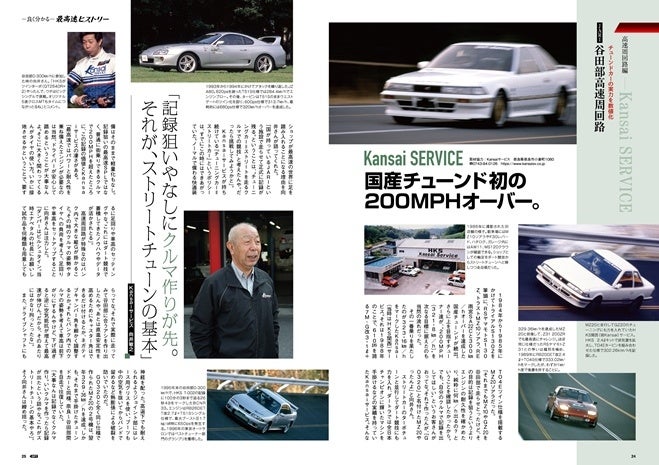 まずは『高速周回路』編としてそのトップを飾るのは、国内最高速の歴史において今なお語り継がれる2台。1981年に国内初の300km/hオーバーを達成した光永パンテーラSPLと、1983年に国産チューニングカー初の300km/hを実現したHKS M300を紹介しています。