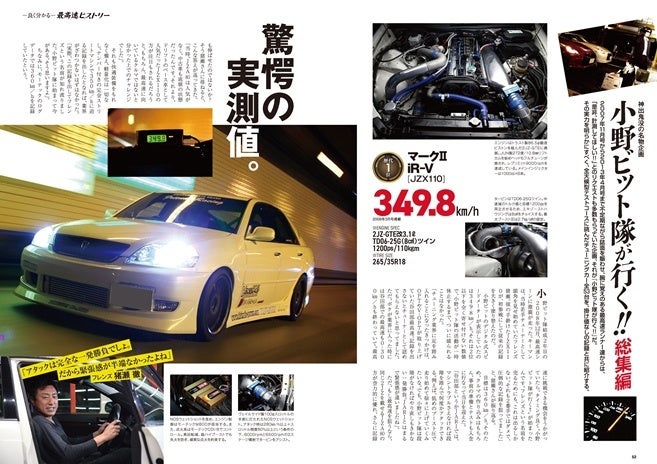 非接触式速度計測器を使い、チューニングカーの実力=最高速を明らかにする名物企画、小野ビット隊が行く!! 神出鬼没で読者からの反響も大きかった企画の総集編として、これまで計測した全53台についてエンジンの仕様と記録をもれなく掲載しています。