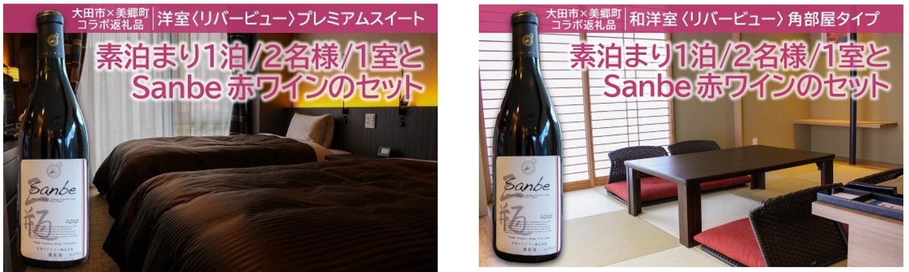 島根県大田市(市長:楫野弘和、以下「大田市」)、美郷町(町長:嘉戸隆、以下「美郷町」)とふるさと納税総合サイト「ふるさとチョイス」( http://www.furusato-tax.jp/ )を企画・運営する、株式会社トラストバンク(本社:東京都渋谷区、代表取締役:川村憲一、以下「トラストバンク」)は1月11日、近隣自治体での共通の地域資源を活かした新たなコラボ返礼品として「石見ワイナリーホテル宿泊プラン+ワインセット」と「『千原温泉・三瓶温泉』浴用温泉水」をふるさとチョイス限定で掲載、申し込みの受付を開始します。