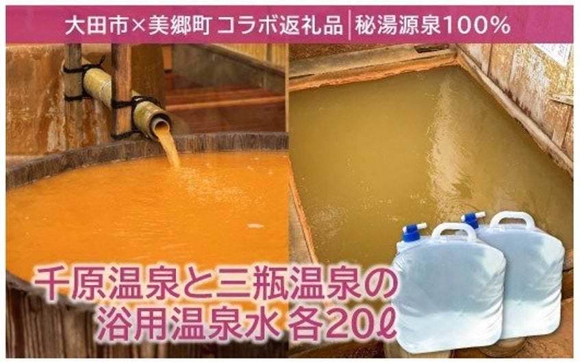- 「美郷町として特産品をセットにしてコラボ返礼品とするものは、初めての試みとなります。千原温泉は、ひなびた温泉好きが推す「日本百ひな泉」で第1位に選ばれており、秘境に古くからたたずむ歴史ある温泉をご家庭で気軽にお楽しみいただけます。また、石見ワイナリーホテル美郷にも是非お越しいただき、美郷町の大自然そして雄大な江の川を眺めながらおくつろぎいただければと思います。今回のコラボ返礼品を皮切りに、大田市と美郷町が行政の区割りを超え、三瓶広域観光振興の取り組みを盛り上げてまいりたいと考えております。」