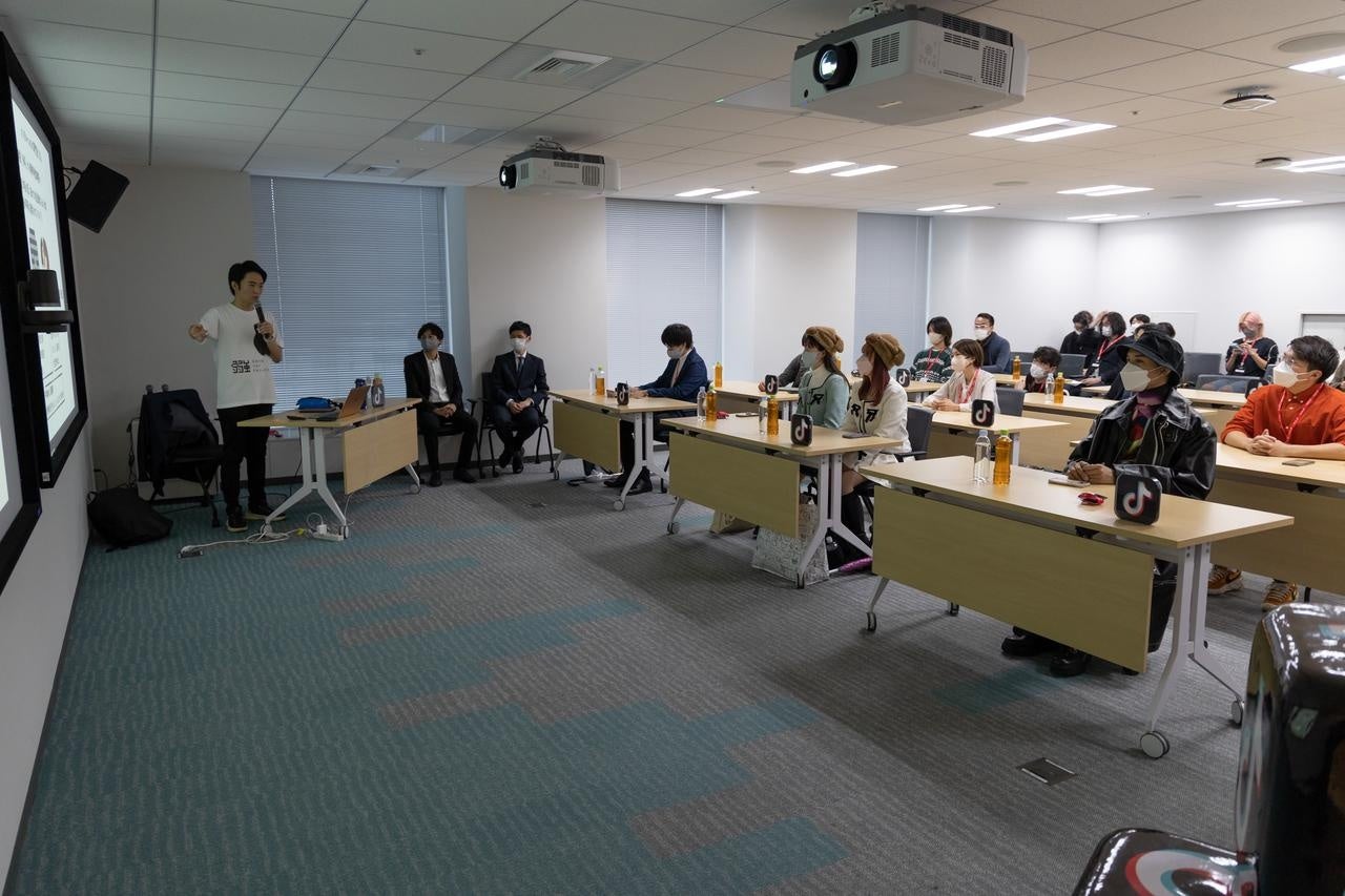 さらにTikTok Japanはクリエイターの皆さまをサポートするため、精神保健・メンタルヘルスの専門家を招き、クリエイターの皆さま向けにTikTok Japanとして初のメンタルヘルス講習会を開催し、講師として国立精神・神経医療研究センターで心の健康やメンタルヘルスを研究している小塩靖崇先生をお招きしました。当日はTikTokの人気クリエイター13組(14名) が集まり、小塩先生のお話に熱心に聞き入りました。